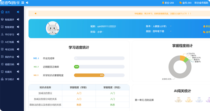 思酷睿数学智能学习系统,可以做到知识点纳米级拆分。融测于练,融练于学。 可以精准定位学生的知识漏洞,根据漏洞给学生推送相应的学习内容; 并且可以根据每个学生的个人情况,为不同层次的学生推送不同难度的题目。