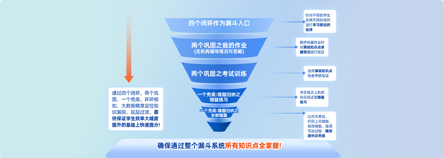 四个闭环作为漏斗入口,针对不同学力水平的学生采用不同的闭环进行学习路径的选择,