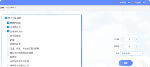 检测当前或者-段时间内的学习效果,可以自主选择题目类型、设置题目个数、也可以选择题目难度,